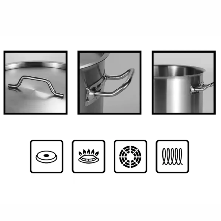 - Possui fundo triplo (aço inox + alumínio + aço inox), tecnologia que distribui melhor o calor, cozinhando os alimentos mais rapidamente e com menos gasto de energia.