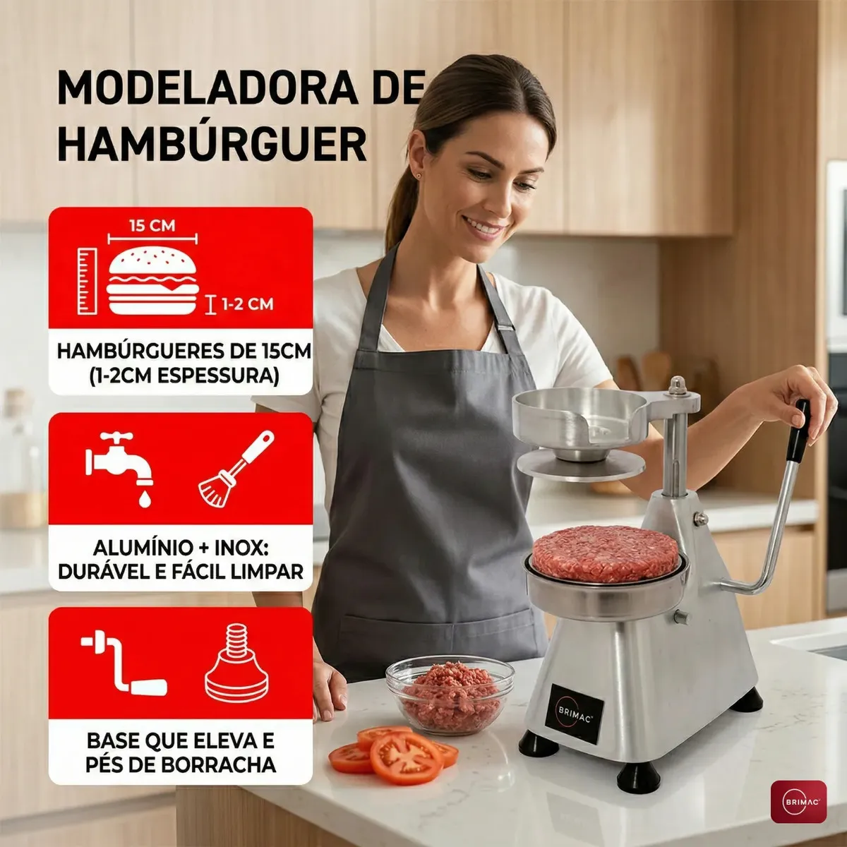 MDHB15 - MODELADORA DE HAMBURGUER 15CM - BRIMAC